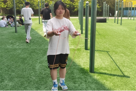 接受采访时,陈美淋刚刚结束女子短速跳绳比赛,她告诉记者,她在本次校运会中还参加了三人制篮球赛,目前,她已经在女子短速跳绳比赛中荣获一等奖。成功不是一蹴而就,而是厚积薄发的沉淀,她说道,在别人眼里跳绳是一项简单的运动,但是在比赛前也需要花时间和精力去训练和提升自己。陈美淋在跳绳比赛前坚持每天都进行跳绳训练,在问到训练的时候是如何克服困难,她回答到,训练也有不在状态的时候,会有点焦虑,运动会突然通知提前举行,她会担心训练时间不够。但每次训练陈美淋都当做比赛来看待,在一次次的训练中找到适合的速度与姿势,更加娴熟后心情逐渐放松下来,训练也更加顺利。陈美淋作为一分钟跳绳及女子篮球3v3的参赛人员,当跳绳和篮球训练冲突时,若无晚自习,她会先完成跳绳训练,再进行篮球训练;若有晚自习将会先进行篮球训练,结束晚自习后再练习跳绳,尽量使两者训练时间均衡。