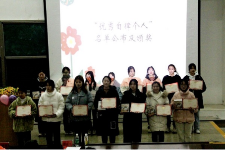 随后,刘婧老师宣读“优秀自律个人”名单,并颁发“优秀自律个人”奖项。全体学生鼓掌祝贺,刘婧老师和获奖学生合影留念。