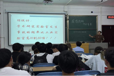 张杰老师以“你眼中的实验室是什么样子?”为引,开启与新生的互动交流。通过高校实验室安全事故案例和“学术研究实验室事故频率比工业实验室高10到50倍”的统计数据,将实验室潜藏的安全风险直观呈现在新生面前,让学生深刻认识到实验室的安全问题。他强调,进入实验室前,必须清楚潜在危险、最严重安全问题及应对措施,同时要耐心学习安全设备的使用并确认其完好性。