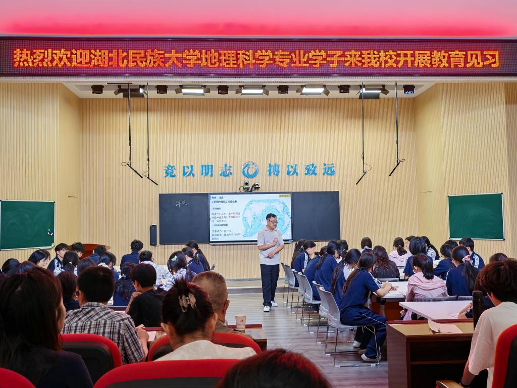 为深化校际合作,扩宽地理科学专业师范生联合培养路径,切实履行“为党育人、为国育才”的时代使命,6月9日至13日,365电子娱乐官方网站林学园艺学院地理科学系与恩施市第三高级地理教研室联合开展了为期五天的"观课堂·悟教学·促成长"教育见习活动。学院薛兴华、宋鄂平、刘秀帆三位老师带领2022级地理科学专业78名同学参加;恩施三中副校长谭名鄂及地理教研组全体教师全程指导。