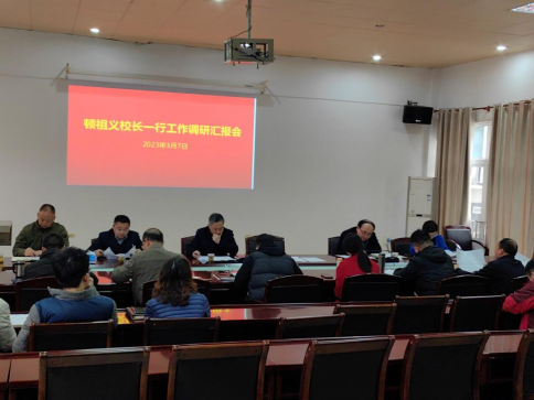 (通讯员 余慈爱)2023年3月7日,校长顿祖义率学校相关职能部门负责人到我院开展现场调研,切实推进学院办学条件改善工作并与学院领导班子成员、各科室负责人以及专业负责人进行座谈。