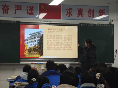 宣讲中,同学们结合自身经历与感悟,以“大学学姐学长”第一视角展示大学的学习与生活,分享自己从高中生到大学生的变化,介绍自己所在学院及所学专业,展现林学园艺学院办学特色、学科优势,帮助学弟学妹们答疑解惑,助力明晰升学规划。其中,来自林学专业的谭元科同学以专题宣讲为主,积极交流分享经验;来自园艺专业的周荷婧同学重点介绍林学园艺学院学科建设、学院特色,鼓励学弟学妹们积极报考;来自园林专业的丁紫颜同学通过展示学院师资力量、教育教学成果,分享所学专业;来自地理科学专业的木媛同学以班级讲座、一对一交流等方式,解析我院专业特点及就业前景;来自城乡规划专业的陆剑同学以校史为脉络,阐释“博学博爱、立人达人”校训内涵,激发学子共鸣。