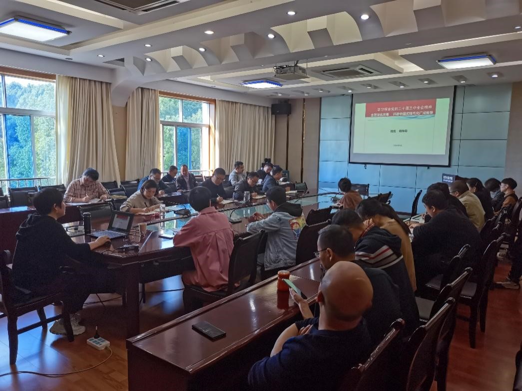 为深入学习贯彻党的二十届三中全会精神,进一步统一思想、凝心铸魂,1031日下午,学院邀请学校宣讲团周传和副教授在四楼会议室做学习贯彻党的二十届三中全会精神宣讲。学院党总支副书记郑敏主持宣讲会,党总支副书记、院长唐利明,党总支委员、副院长向会立、方壮以及全体教职工参加宣讲会。