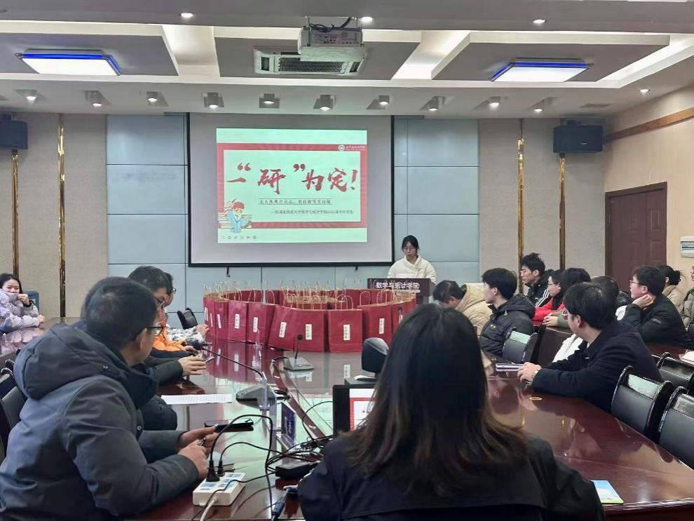 为鼓舞考研学子士气、增强考研信心,确保大家以最优状态迎接挑战,12月19日,数学与统计学院在四楼会议室举行2025年研究生入学考试“一研为定,定为研一”考研加油会。学院党总支副书记、院长唐利明,党总支副书记郑敏,党总支委员、副院长向会立、方壮,以及2021级班主任齐聚一堂,共同为考研学子加油鼓劲。学生会主席王千千主持活动。