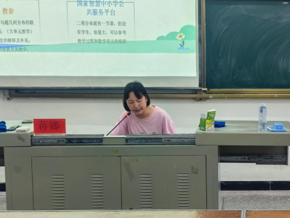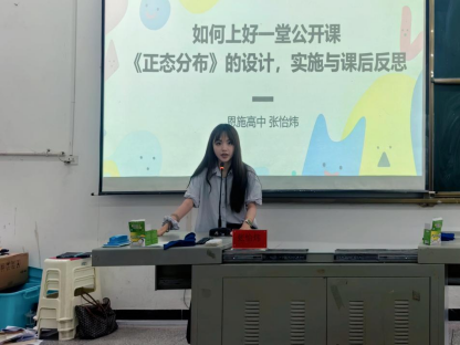 6月18日下午,讲座在3307教室举行。恩施高中蒋娜、张怡炜两位老师依次开展教学分享。蒋娜老师以《二项分布》公开课为例,分享了“教材研读—内容定制—课件制作”的三阶段备课流程,强调情境引入、问题串联与阶梯训练的有机融合,为学生备课与课堂组织提供了有效参考。