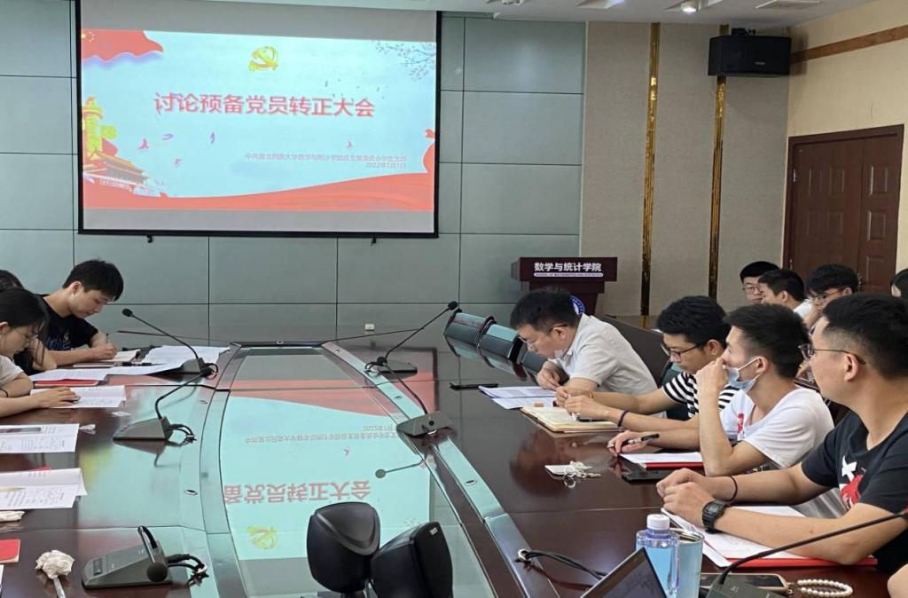 2022年71下午数学与统计学院学生党支部在四楼会议室召开支部大会,讨论确定刘悦、王子昂、付慧等6名预备党员为正式党员。全体党员参加此次支部大会会议由党支部书记黄丽娜同志主持。