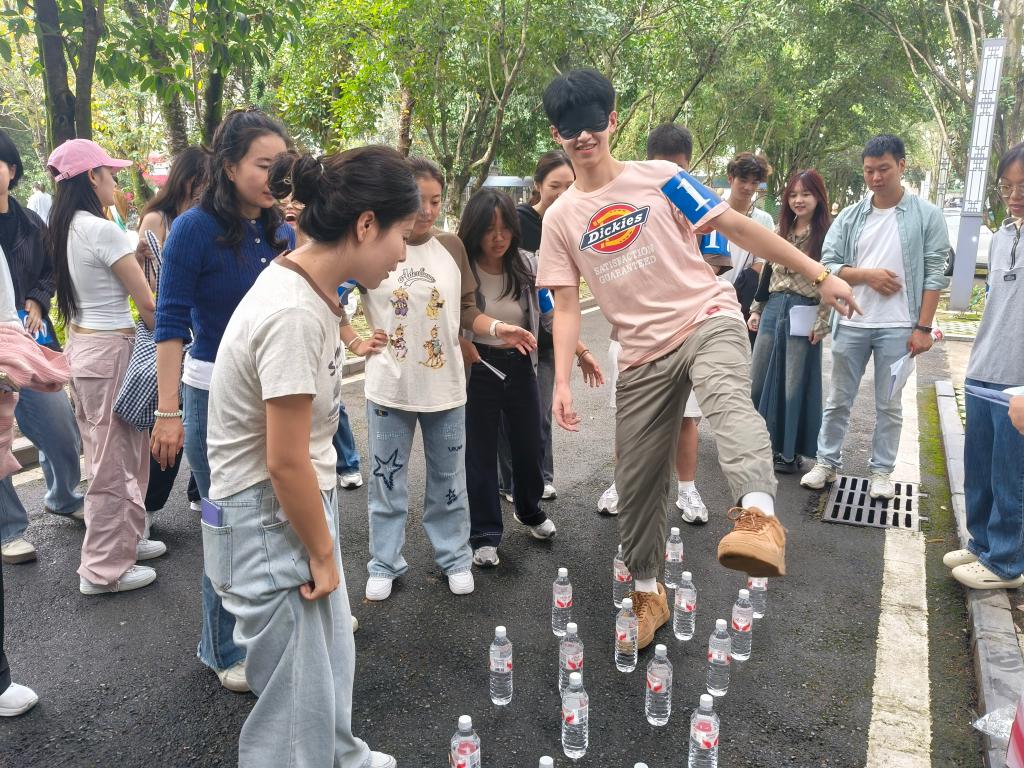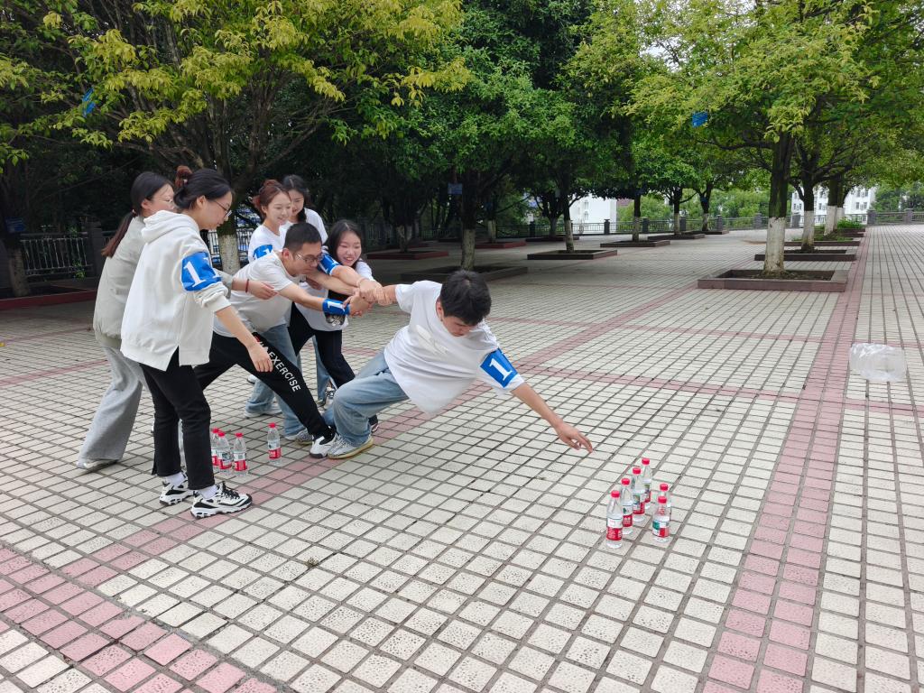 本次活动打破学院与专业界限,鼓励新生自由组队,在趣味探索与协作挑战中增进交流、建立友谊。本次活动设置“群龙取水”“沙包投掷”“穿越雷区”“一心向前”“武力值比拼”“保龄球”“激情传递”“你画我猜”八个趣味项目。其中“激情传递”项目尤为引人注目,不仅促进了跨院系学生的互动,更充分展现了团队凝聚力与协作精神。尽管天气炎热,同学们依然热情高涨,比赛现场气氛热烈,欢声笑语不断。同学们在奔跑中解锁熟悉了校园环境、在挑战中收获成长与友谊,充分展现了体育育人实效。