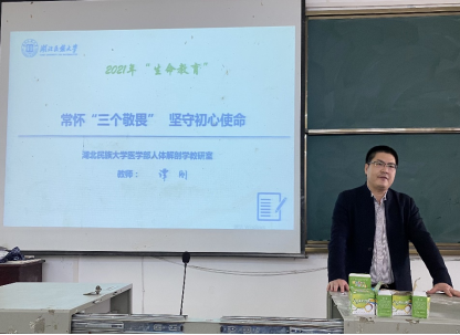 本网讯(见习记者 孙康/文 孙康/摄)4月15日下午,医学部人体解剖学教研室谭刚老师再一次受学院邀请,在我院3308教室为我院2020级信息与计算科学专业学生分享以“常怀三个敬畏,坚守初心使命”为主题的生命安全教育讲座。