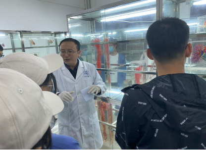 讲座结束之后,我院2020级信息与计算科学专业学生在谭刚老师和我院团学干部的带领下有序进入解剖室参观。参观期间,由医学部人体解剖学教研室谭文波老师、王振富老师以及李震阳老师负责对学生们进行详细的宣讲遗体捐献、默哀仪式和解说相关医学知识,引导学生参观人体解剖学陈列室,科普人体生命的奥秘。讲解员通过给学生展示人体脑部、胸部、腹部等各种切片以及各时期人体器官标本,从而让学生从人体的基本结构和器官的病变等方面有更深刻的了解,从而认识到生命的伟大。