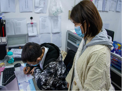 (班主任批假时全程戴口罩)