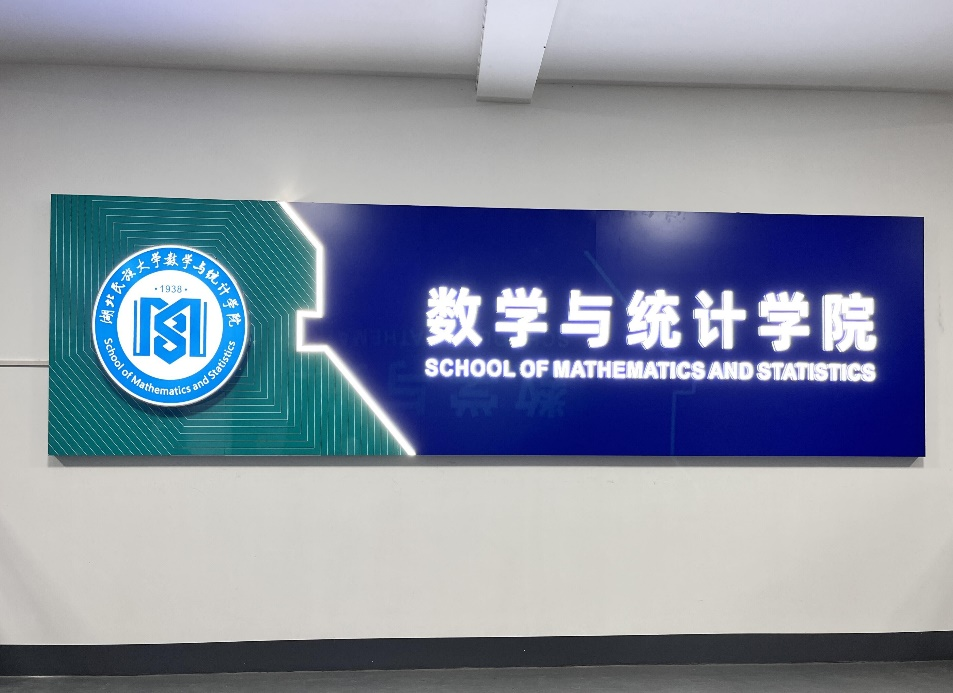 本网讯(记者 尚者 李雨洁/文 杨雪芬/摄)新气象,新未来。近日,我院新院牌正式竣工,并于5月22日庆贺宣传。新院牌由院徽和学院名称两部分组成,并分置于绿色和蓝色之上,“数学与统计学院”七字工整明亮,院徽图案简洁而寓意丰富,并由一圈圈直线线条所包围。新的院牌展现我院新的风貌,昭示我院蓬勃的朝气和昂扬的精神面貌,同时也寄予着学院和学生发展永无止境、奋斗未有穷期的美好希望。(责任编辑/廖祥宇 审核/赵魁轩)