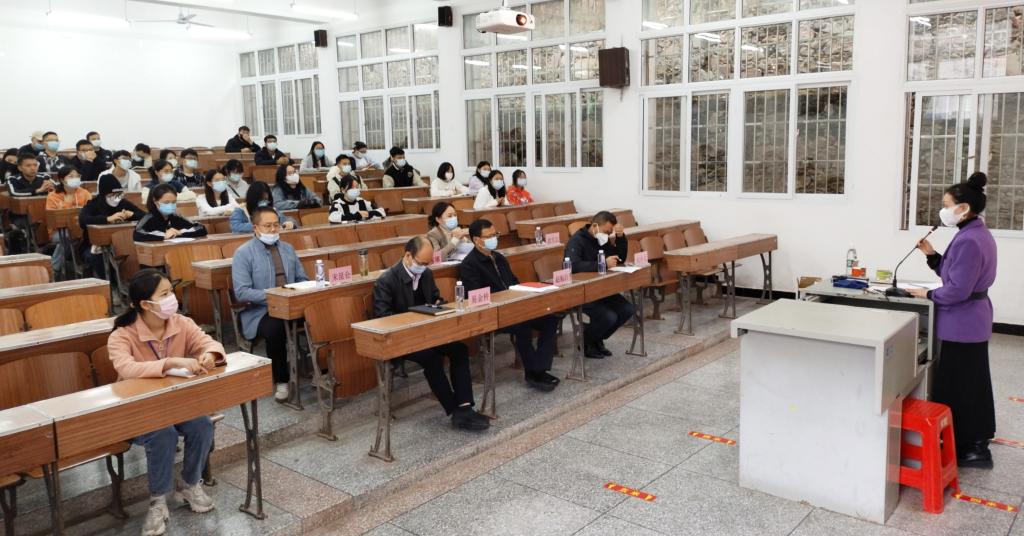 会议伊始,姚雪迓介绍出席老师,宣布实习动员大会正式开始。接着宋昆仑向大家讲述实习相关事项,包括实习管理、实习内容和实习考核。我校实习管理施行三级管理,由各二级学院总筹,教师教育学院整体分配具体实习基地学校;实习内容分别有教学实习、教育工作实习和教育调查实习;实习进度根据不同学校采取不同安排。宋昆仑强调,因为疫情,今年的实习期减少一个月的时间,希望同学们能够做好课前熟悉准备工作,认真对待上课训练,完成好实习的总结和汇报。关于考核,宋昆仑表示以往考核方式很少反应真实问题。因此今年采用评分制,分为三个模块,带教老师与实习基地打分占60%,试讲占20%,对问题的反馈占20%。宋昆仑希望同学们要正确认识教育实习的意义,端正实习态度,勇于克服困难,处理好各种人际关系。