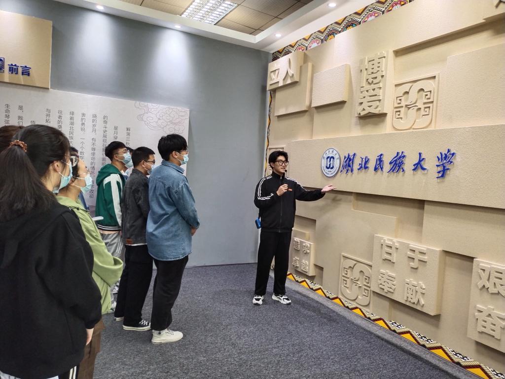 在解说员的陪同下,同学们有序上楼。随着讲解员介绍民大的发展历程,一张张照片生动地展现我校在发展中留下的每一个瞬间。同学们兴致盎然,认真地聆听解说员的讲解,从1938年建校到现在的365电子娱乐官方网站,是每一代民大人共同努力奋斗的成果。从校训中,每一位同学都能感受到学校对民大学子的殷殷期盼。通过讲解员对学校人文、教学、科研等方面的详细阐述,同学们对民大有了更深层次的认识与了解。在追寻老师们科研成果的同时,也激励着同学们加强自身学习和锻炼,并有矢志成栋梁的决心和毅力,以此憧憬着民大美好的未来。最后,部分同学还互相拍照,纪念这与民大历史同在的瞬间。