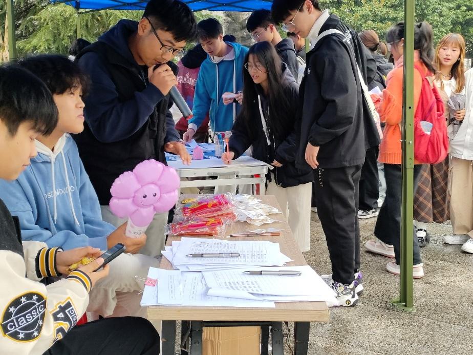 2023年11月25日上午九点,我院心理健康部、学生会学风建设部、学生会办公室和团总支办公室联合心理健康中心在大学生广场举办“与焦虑和解,与热爱同行”活动,全校学生积极参与。