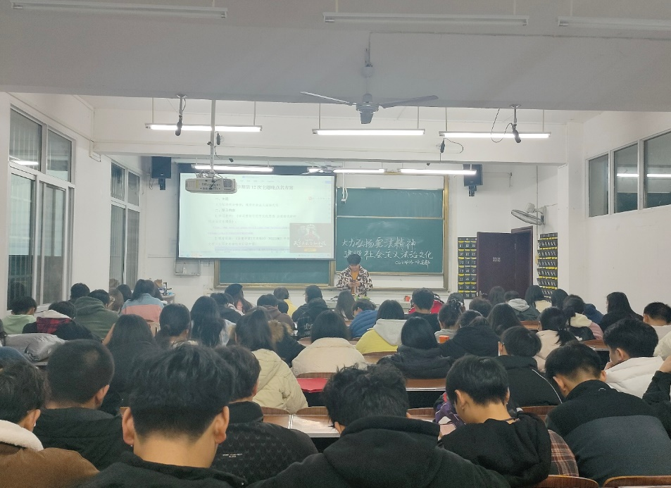 2023年12月1日至12月7日是我国第六个宪法宣传周。今年宪法宣传周的主题为:大力弘扬宪法精神,建设社会主义法治文化。12月3日晚,学院开展专题教育活动,本次活动由班长主持,全体学生参加。
