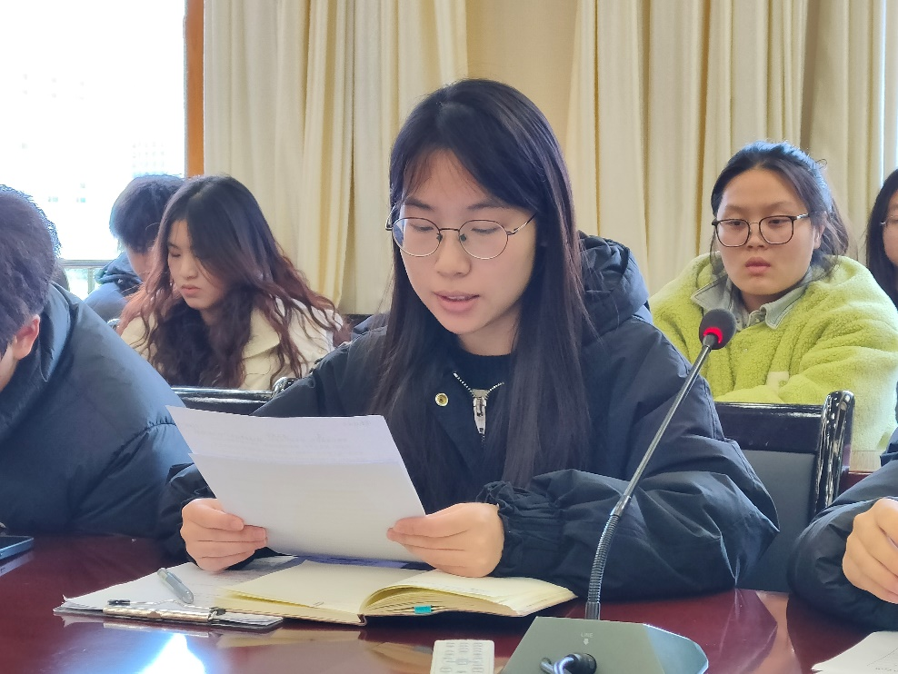 团总支副书记肖阳锋与学生会主席王千千也分别对组织内部整体工作进行了总结。肖阳锋从思想建设、优化管理、锤炼团队、活动举办以及反思不足五个方面进行了工作汇报,并明确表示后续将锚定“保‘五四红旗团总支’称号,争‘五四红旗团总支标兵’称号”的目标,以强化团组织示范引领作用,提升学生干部队伍建设为工作准绳,确保团总支工作的高质量持续发展。