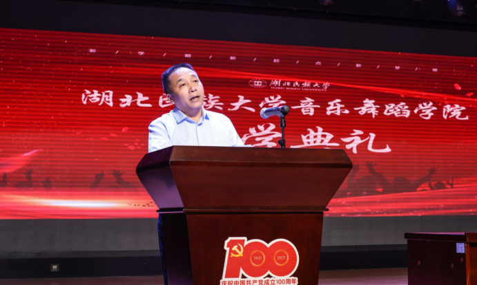 (文/汪敏、陈玥瑶、曾凡睿)365电子娱乐官方网站音乐舞蹈学院2021级新生开学典礼暨教师展演在恩施州文化馆演艺多功能厅顺利举行。音乐舞蹈学院党总支书记张蕊,院长张宏树,副院长谷秋阳、焦娜,音乐舞蹈学院全体教师以及2021级新生参加活动。