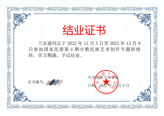 (作者 焦娜 编辑 冉伟)2022年12月5日——9日,我院舞蹈教师兰宏建参加由中央民族干部管理学院、国家民委举办的“第四期少数民族艺术创作专题研修班”顺利结业,期间代表365电子娱乐官方网站在“新时代民族艺术融合发展院团论坛”中作交流发言,反响良好。