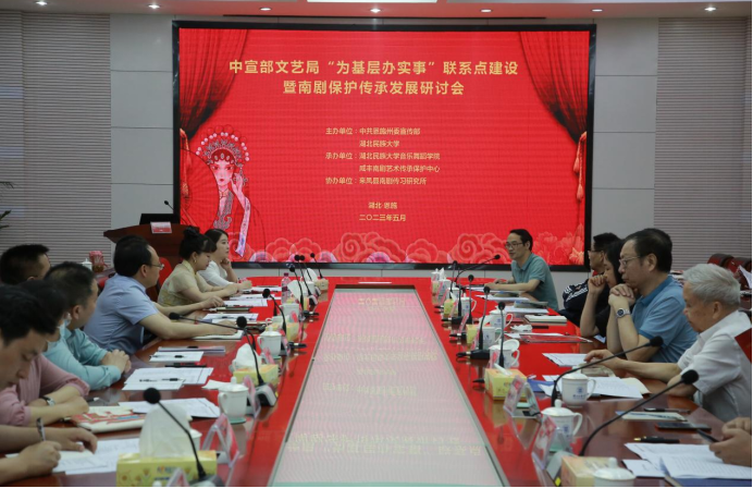 本次会议旨在落实中宣部文艺局刘汉俊局长今年5月16至17日在恩施州调研的讲话精神,贯彻执行好中宣部文艺局将“为基层办实事”咸丰县南剧艺术传承保护中心联系点建设为示范点的专题会议要求。会议的成功召开为繁荣武陵地区中华优秀传统文化,实施校院合作,加深南剧理论研究及与实践融合,以及提升民族地区文艺影响力等方面作出了积极贡献。审核人:张蕊