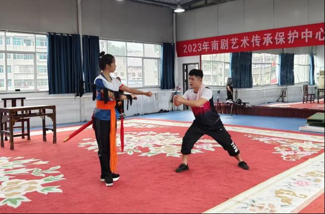 在咸丰县南剧艺术传承保护中心,团队成员一同观看了南剧剧目的排演和土家锣鼓的演奏,了解土家锣鼓的演奏方式和技艺,领略土家锣鼓的魅力。同时,还采访了南剧团演员杨理理老师并了解到南剧夏令营活动的筹备开展情况。