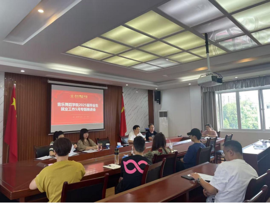 5月22日,音乐舞蹈学院2025届毕业生就业工作5月专题推进会在学院四楼会议室召开,学院院长谷秋阳、副院长焦娜、党总支副书记邓丽,副院长王松,学生科科长胡自爱、各系部负责人、毕业班班主任、航艺专业企业方负责就业教师参加会议。会议由党总支副书记邓丽主持。