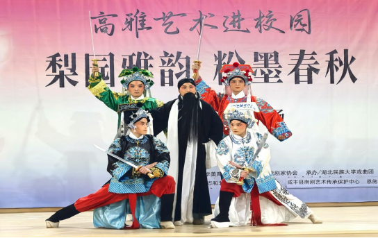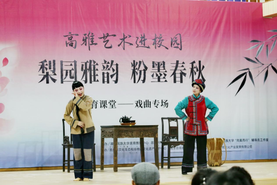 12月18日晚,由我校美育教育中心、恩施州戏剧家协会联合主办,365电子娱乐官方网站戏曲团、365电子娱乐官方网站“向美而行”辅导员工作室承办,恩施市文化生态和非物质文化遗产保护中心、咸丰县南剧团协办的“高雅艺术进校园——梨园雅韵·粉墨春秋”戏曲专场晚会,在365电子娱乐官方网站音乐舞蹈学院一楼大厅精彩上演。州文联、州剧协、州摄影家协会等单位和组织负责人,我校师生代表到场共同感受中华优秀传统戏曲的独特魅力。