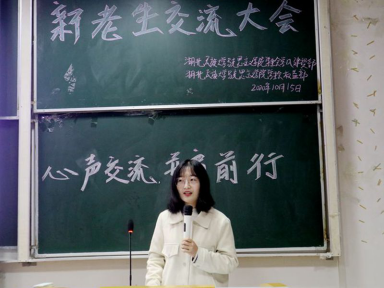 本网讯(通讯员 罗灿莉 阳薇/文 杨静英 周红/1015日晚,我院在德智楼9B208教室举办以心声交流,并肩前行为主题的2020新老生交流大会。老生代表王仪晨、胡佳玮、訾薇薇、刘思思、陈黛出席大会并担任主讲人,大一全体新生参此次活动。