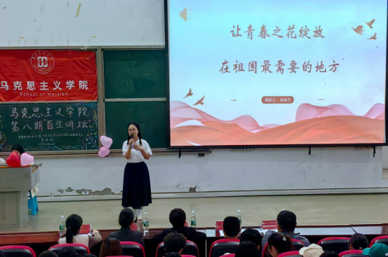 此次“百生讲坛”活动的举办,在推进习近平新时代中国特色社会主义思想进班级、进支部、进社团、进网络、进团课的同时,更加坚定广大青年学子听党话、跟党走的信念,帮助马院学子将青春理想融入效国之行,为成为担当民族复兴大任的时代新人而不断奋斗。