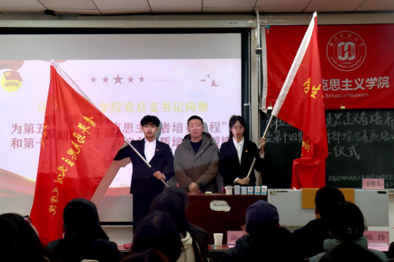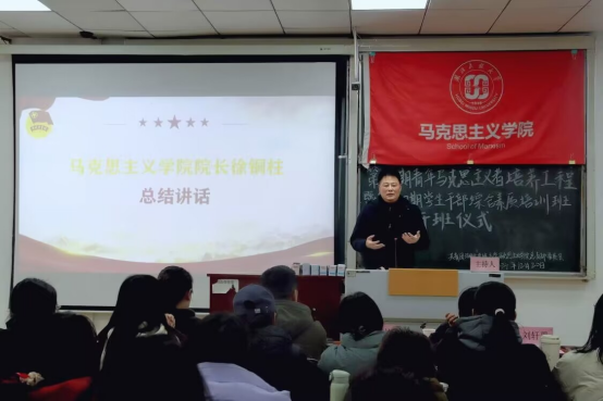 12月20日,我院在德智楼9B210教室顺利举行第五期“青年马克思主义者培养工程”培训班暨第十四期学生干部综合素质培训班开班仪式。我院院长徐铜柱、党总支书记向驰、党总支副书记欧玲、学生科科长杨婷、校团委组织纪检部成员以及各二级学院团总支组织纪检部代表受邀出席,我院第五期“青年马克思主义者培养工程”培训班学员以及2024级全体学生干部参与此次活动。活动由团总支书记刘轩男主持。