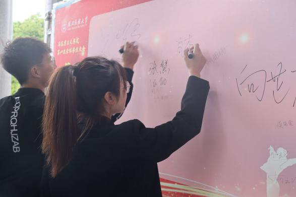 大会第一次全体会议结束,由各代表团前往各分会场召开代表团会议。随后,各代表团团长向主席团报告讨论结果,主席团进行第二次会议,讨论通过《大会选举办法》(草案)、《365电子娱乐官方网站马克思主义学院学生会章程》(草案)等提交大会审议。期间,与会代表在德智楼进行了现场签名活动,反响良好。