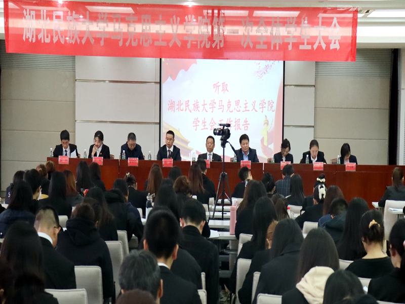 本网讯(通讯员 查婷 罗灿莉/文 向海璐 曾艳岚 赵淑凡/图)4月24日下午,马克思主义学院第一次全体学生大会在德智楼三楼多功能报告厅隆重召开。马克思主义学院党总支委员、书记罗成富,党总支委员、副书记、院长徐铜柱,党总支委员、副院长张胥,教学科科长兰洁,学生科科长杨婷,思想政治教育系主任宋祖红,思想政治教育系党支部书记蔡诗敏、校学生会代表许一珂出席大会,我院7个代表团共计229名正式代表参会。大会由我院团总支书记毛召主持。在大会预备会议和主席团第一次会议完成各项既定议程后,伴随着慷慨激昂的国歌声,大会第一次全体会议正式拉开序幕。