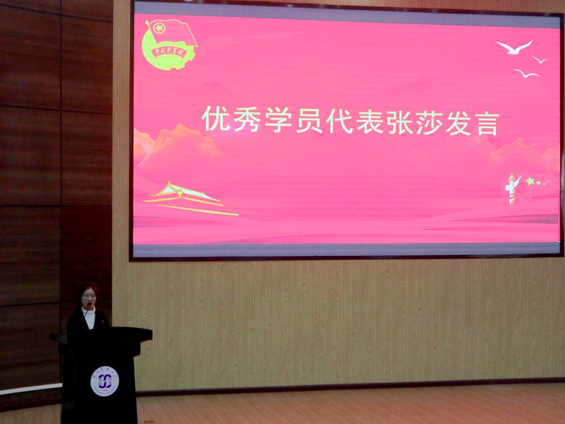 活动伊始,全体起立奏唱团歌和重温入团誓词。随后,上一期优秀学员代表张莎发言,她结合自身经历谈到青马工程在高校思想教育工作中的战略意义不容忽视,青马人应自觉强化马克思主义武装,发挥新时代青年学生的先锋模范作用。紧接着,本期学员代表祁丹悦同学进行发言,她指出作为学生干部和新青年要承担历史使命,做有理想信念的骨干,用实践激发潜力,起到表率作用,并就如何成为一名优秀的青年马克思主义者分享了自己的思考。