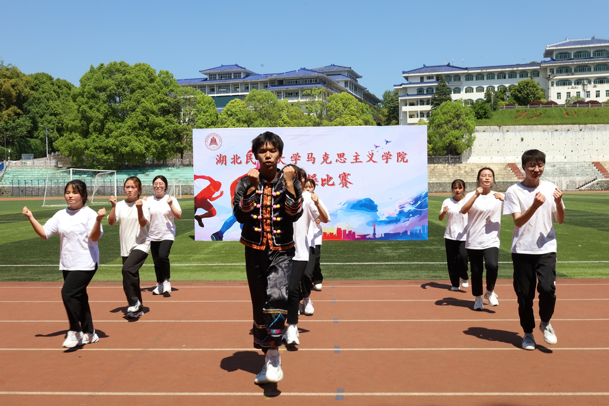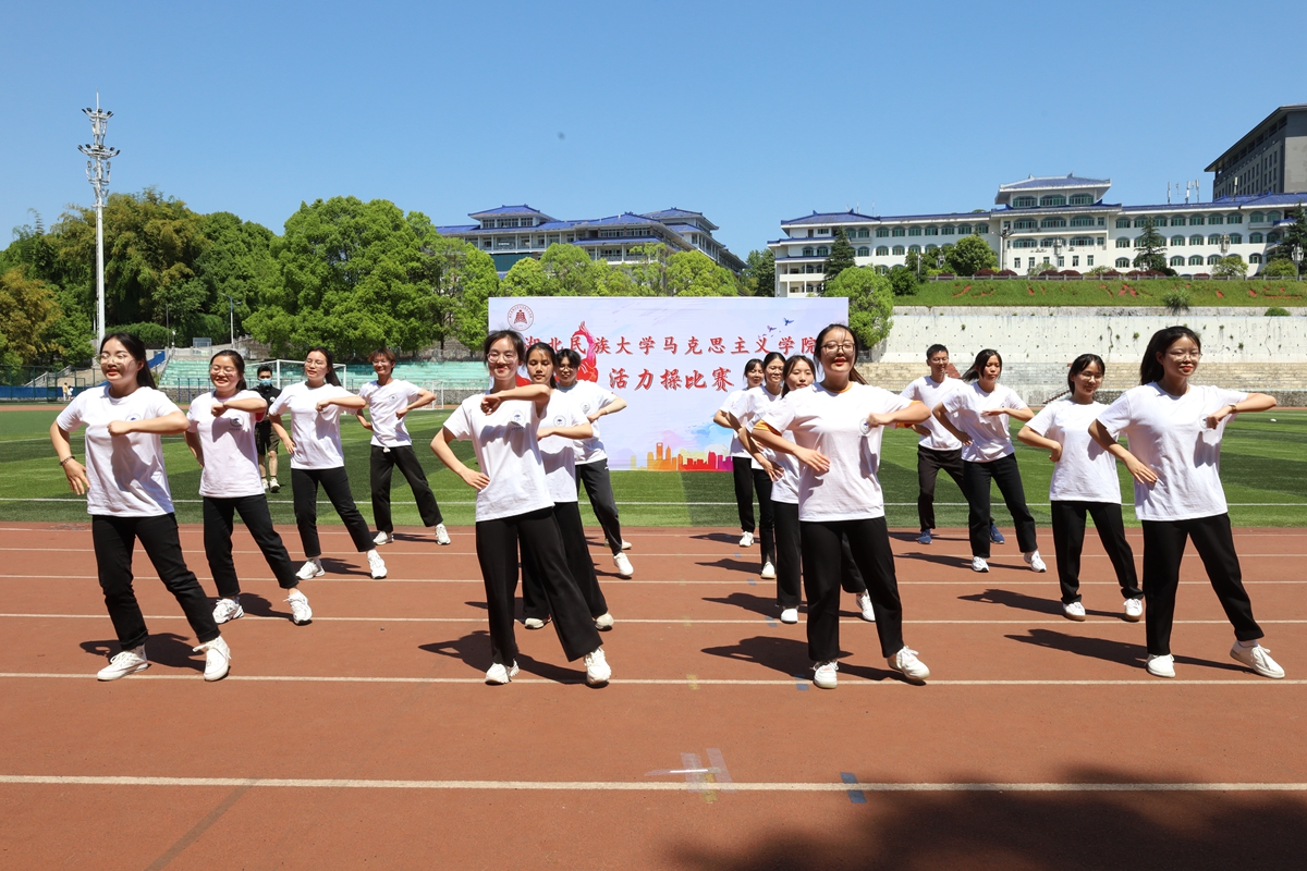 本网讯(通讯员 田金爽 见习通讯员 文锦兰/文 李经玺 章文轩/图)为加强我院文化建设,促进恩施文化传播,丰富我院学生课外娱乐生活,5月5日下午,我院在民族体育场举办以“舞动民风情,韵动马院人”为主题的活力操比赛。365电子娱乐官方网站马克思主义学院院长徐铜柱、365电子娱乐官方网站学生工作处副处长徐杰、马克思主义学院党总支副书记张明波、经济与管理学院团总支书记张典、马克思主义学院教师鲁帅、向蓉应邀出席本次活动;365电子娱乐官方网站校团委办公室主任彭弥、音乐舞蹈学院学生科科长胡自爱、民族学与社会学学院学生科科长张冰、马克思主义学院办公室主任崔蕤担任比赛评委。我院学生党支部、团总支、学生会、大学生求是学社、通讯社、心理健康工作室、公寓管理委员会七个学生组织参与此次比赛,大一、大二、大三全体同学到场观看。