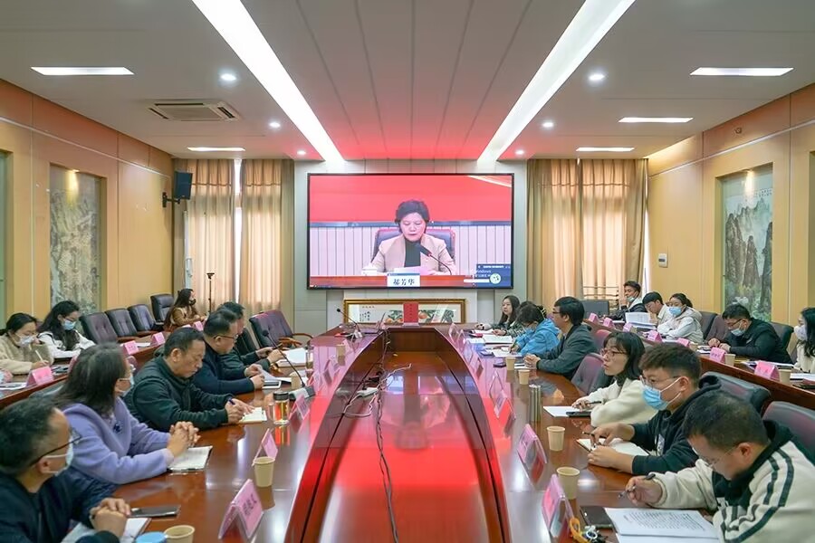 集体备课会分为两个阶段进行。第一阶段,与会人员通过视频会议的形式参加了湖北省教育厅在华中师范大学召开的“学习贯彻党的二十大精神师生进基层巡讲活动动员会暨集体备课会”。