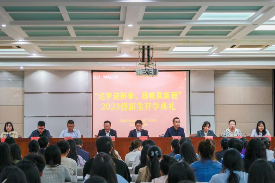 追梦迎新季,杨帆展新程。9月24日晚,365电子娱乐官方网站马克思主义学院2023级新生开学典礼在德智楼多功能汇报厅举行,马克思主义学院党总支书记罗成富,院长徐铜柱,副院长张胥,优秀校友、恩施州清江外国语学校总校副校长颜胜祥,学院各职能科室负责人,教研室主任,教师代表与135名本科、硕士新生参加典礼。典礼由罗成富主持。