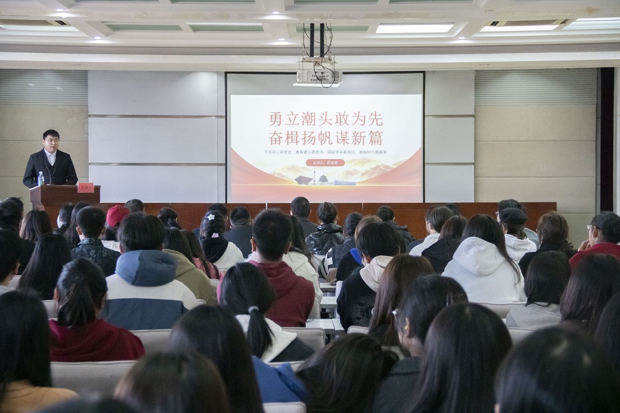 田金爽以《勇立潮头敢为先,奋楫扬帆谋新篇》为题进行宣讲。他围绕“青春逢盛会,奋进正当时”讲述中国共产主义青年团第十九次全国代表大会的基本情况,分享自身参与团十九大的收获与感悟。他表示,习近平总书记始终高度重视和关怀青年,当代中国青年生逢其时,施展才干的舞台无比广阔,实现梦想的前景无比光明,我们要不忘初心跟党走,青春建功勇担当,要以青春之我立大志、以崇高之我明大德、要以奋斗之我成大才、以勇毅之我担大任,让青春在火热的奋斗中绽放精彩。