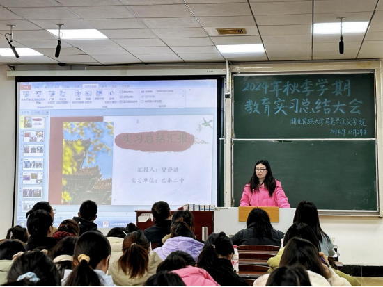 12月24日下午,我院在德智楼9B210教室召开2024年秋季学期教育实习总结大会。我院副院长张胥,思想政治教育系主任梁舒,实习带队老师张少玲参与此次会议。会议由教学科科长兰洁主持,大三、大四全体学生参加此次大会。