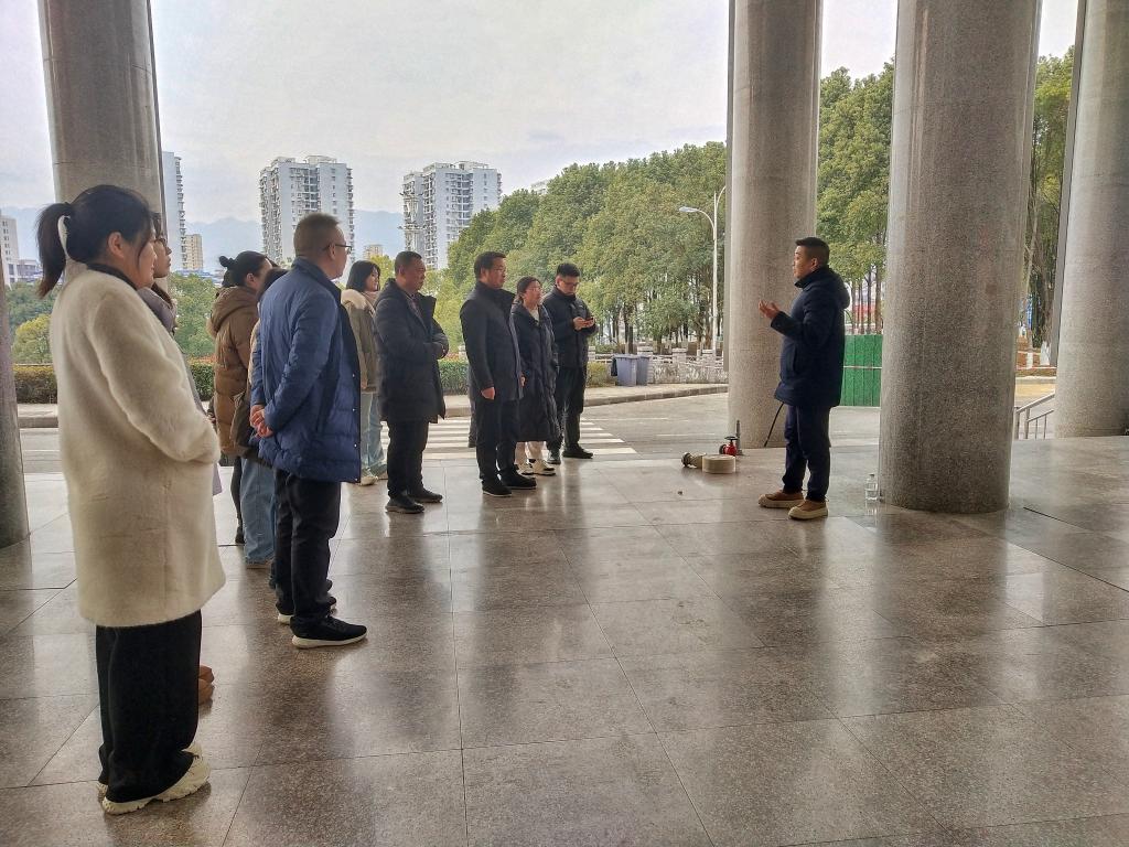 本网讯 1月9日下午,为进一步增强全体师生消防安全意识,落实校园消防安全工作,提高师生自护自救能力,帮助师生掌握应对突发火灾情况的应变、逃生、灭火技能,马克思主义学院协同学校保卫开展了消防安全紧急疏散演练活动。学院全体教职工和部分学生参加,保卫处副处长李建华、消防科向宣霖、曾飞翔、吕刚到场指导并进行示范。