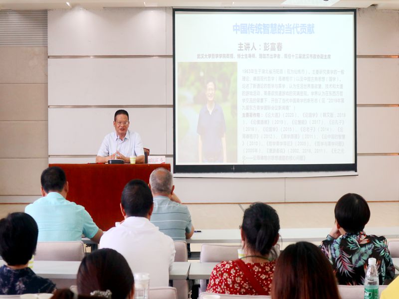 本网讯(通讯员 查婷 王婵媛 罗紫彤/吴丁鑫 董轩琳/图)6月24日下午,武汉大学哲学学院教授、博士生导师、珞珈杰出学者、十三届武汉市政协副主席彭富春莅临我院,在德智楼三楼多功能报告厅开展以“中国传统智慧的当代贡献”为主题的学术讲座。我校党委副书记、副校长汪兴平,我院党总支书记罗成富,部分教师出席本次讲座,我院大二、大三全体学生参加此次活动。