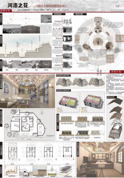 作品以装饰画为表现形式,安徽古村落作为主要设计元素,将村落的主要特色进行分析总结,提炼出建筑形态,雕刻装饰,村落水系三个点作为设计元素。参考中国传统山水墨画的颜色和意境传达方式,进行创新材料创新形式的表达。
