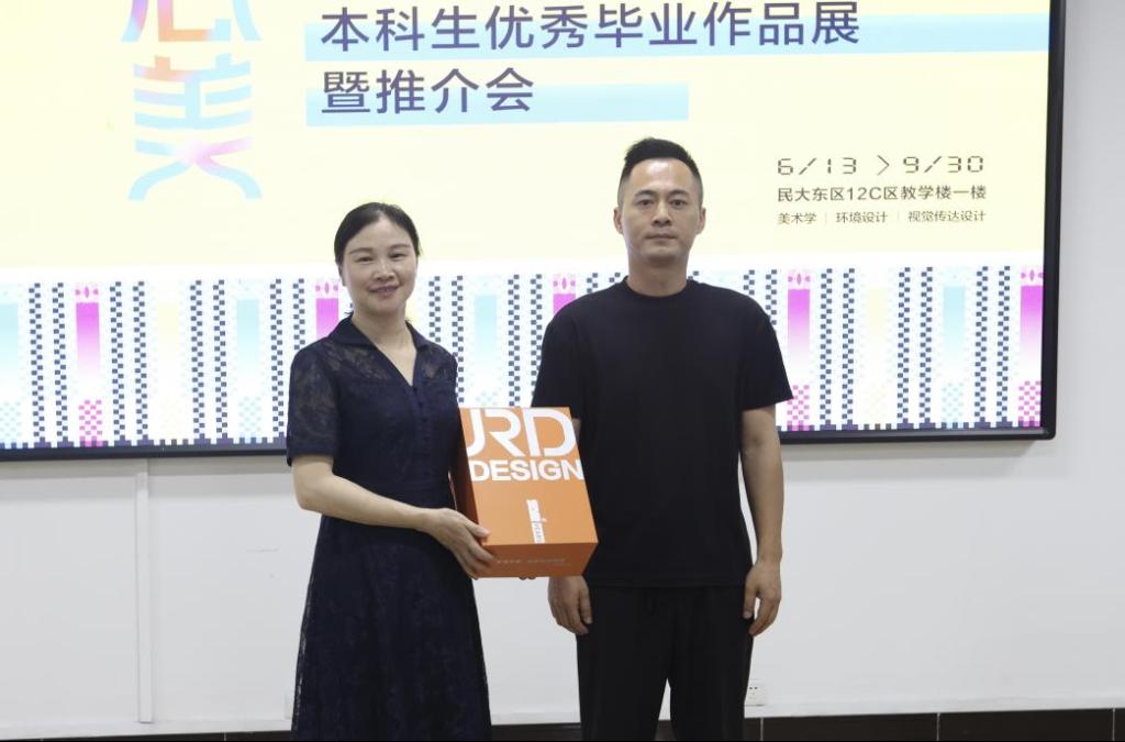 当日10点在7304智慧多功能教室举行了“校企校地合作共赢”研讨会。美术学系副主任倪霓、视觉传达设计系主任杨梓秦、环境设计系主任董灵文分别介绍了本专业情况及部分优秀毕业生代表作品。院长石庆秘为恩施何氏装饰有限责任公司等6家校企合作企业进行授牌,学院党总支书记田英接受金睿达品牌创意研发有限公司图书捐赠。与会嘉宾围绕着“校企校地合作共赢”进行了深入探讨,多位嘉宾分享参加本次活动的感言以及后续校企校地合作的建议。其中,恩施州城乡规划设计院总工程师朱莹同志分享参加本次推荐会的两点感言:一是艺术助力地方文化创新发展,为地方文化发展注入了活力;二是强调了校企合作协同培养人才的重要性,提出要进一步加强学校与企业沟通合作,为地方发展输出更多应用性人才。最后院长石庆秘教授表示:希望通过此次推介会,深化校企校地合作平台建设,期待今后校企合作的深度交流、长期协作与共同发展,共同为美术与设计教育助力,为学生发展和就业提供更好的机会,为恩施社会与文化创新发展赋能。