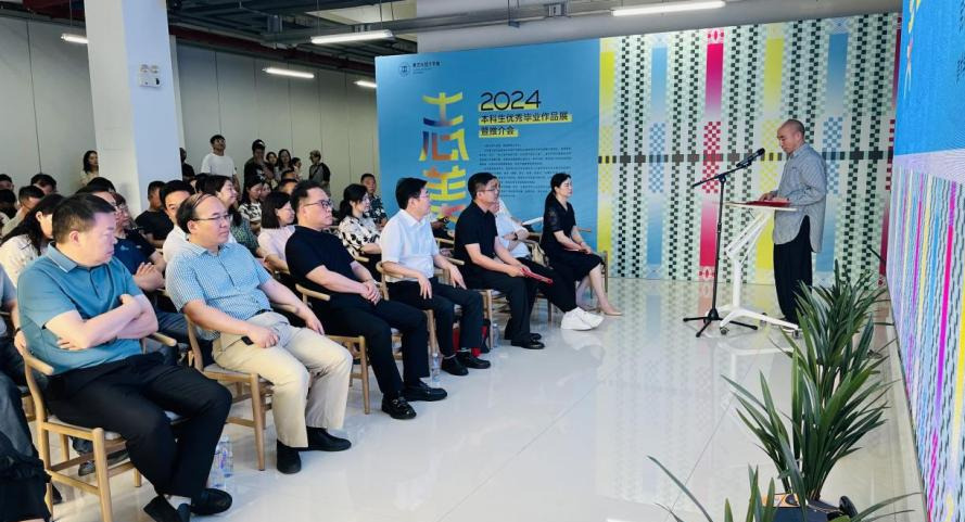 [本网讯,胡明玥] 2024年6月13日,365电子娱乐官方网站美术与设计学院“艺术赋能地域文化新发展:2024届本科生毕业创作优秀作品展暨推介会”在学校12C栋一楼志美艺术展厅和7304多功能智慧教室举行。学校党委副书记邓磊出席开幕式并宣布展览开幕,学校党委宣传部常务副部长罗翔宇、实验室建设与管理处处长雷辉、校团委书记吴珊、学工部副部长赖申昊、教务处副处长陈龙菊、创新学院副院长李超、来自恩施州58家企事业单位的近70名嘉宾以及学院部分师生参加了此次活动,学院院长石庆秘主持开幕式,推介会由副院长向思全主持。