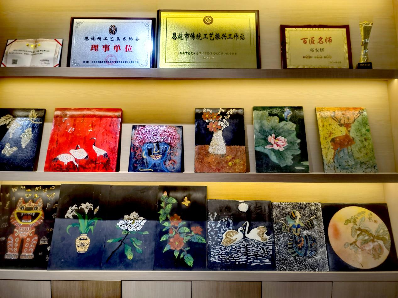 一是该工作室以美术学、视觉传达、环境设计三个专业为依托,倡导师生协同合作,秉持理论与实践一体化、实践与学术并重的理念,积极组织参与全国及省级的漆艺艺术展览与学术交流活动。通过这种方式,促进知识的交融与创新,提升师生的专业素养与艺术视野。 二是该工作室为学生搭建了实践创新平台。在这里,学生能够参与具体项目,将教学深度融入项目进程之中,亲身开展调研、策划以及创作创新等活动。在实践创新过程中,学生们不断深化理论知识;在市场开发环节,其实战能力与市场体验能力也得以有效提升。同时,工作室与漆艺企业公司开展战略合作,紧密贴合社会需求。目前,工作室已与恩施市漆道文化传播有限公司达成合作。如此一来,不仅极大地提升了学生的实践创新能力,更显著增强了他们的就业竞争力,切实打造了一个产、学、研相结合的优质平台。