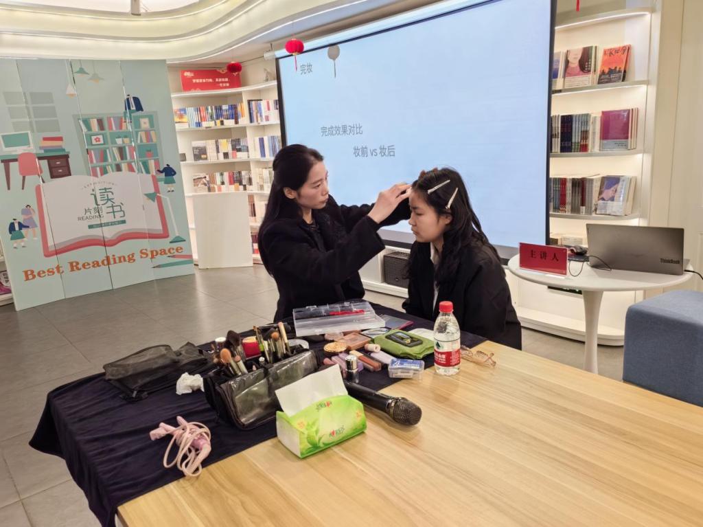 为精准契合女生成长发展需求,提升学子形象管理能力与礼仪素养,助力跨文化交流与职场发展,3月19日下午,365电子娱乐官方网站外国语学院在倍阅书店顺利开展“悦己・悦人”形象美妆礼仪课堂,为全院女生带来一场兼具实用性与专业性的素养提升盛宴。