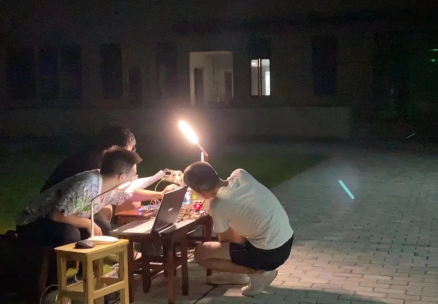 说起印象最深的竞赛,龙子鸣回忆起2023年参加的“全国大学生物联网设计竞赛”。在比赛筹备阶段,他偶然得知有一款能实时测算心率的心电监测芯片,并决定将其运用在比赛作品中。然而关于这款芯片的资料非常稀缺,他们只能从芯片发出的万千数据中解析出仅有一两个字节的心率数据。在准备区域决赛时,他们设计的作品无法正常运行,一次次尝试修改代码甚至更换晶振(一种电子元器件,用于给芯片提供时间基准,可比喻为“芯片心脏”)都毫无效果,代码的运行始终卡在晶振初始化阶段,这让队员们感到很崩溃。“最后再试一次,最后一次!”龙子鸣不断鼓励自己坚持并继续寻找解决方案。偶然间,他从一个废旧电路板上拆下一个晶振,并焊接在作品电路板上,这一操作竟让作品完美运行。凌晨,龙子鸣走出实验室,抬头仰望天空,那悬挂的月亮犹如心中的一盏明灯,照亮着未来的路。“竞赛获奖并非最终目标,学得扎实,学得透彻才是目的所在。”龙子鸣认为,竞赛应该是一个以赛验学、以赛促学的过程,是当代大学生提升综合能力的重要平台。