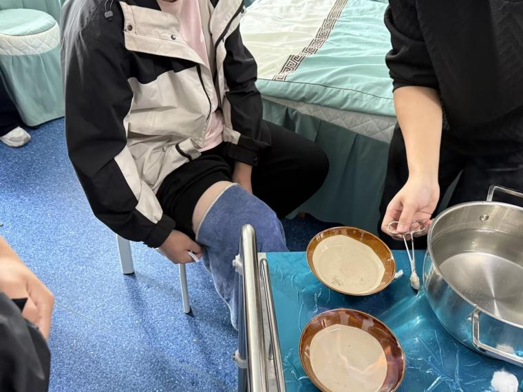 除了三大特色疗法,活动还增设把脉服务。中医仲景协会的专业成员用“望、闻、问、切”四诊中的“切诊”,为师生诊断体质,如是否为寒湿体质、气血是否通畅等。同时,结合小雪节气特点,给出饮用生姜红枣茶、避免久坐受凉等驱寒建议,让师生在体验疗法时也学到了科学的健康管理知识。