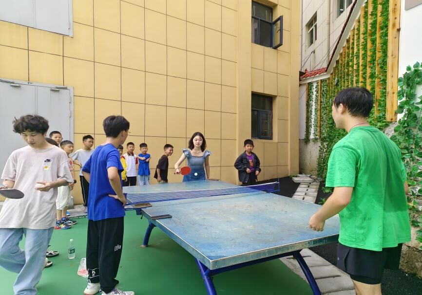 据了解,留守儿童占该校学生总人数的百分之八十,队员们通过调查、分析和研究等方法,找到影响留守儿童健康成长的原因,针对性地提出行之有效的措施。此次活动包括师生田径、师生乒乓球、关爱留守儿童宣传三个环节。在师生田径环节,运动员们皆如利箭离弦,彰显他们全力以赴的决心;在师生乒乓球比赛上,赛制采取了单打和双打两种模式,师生间紧密的配合增进了支教队员和留守儿童间的感情。赛后,孩子们争先恐后地和队员们交换联系方式,这让启明星支教团队员们更加坚定了长期服务留守儿童的决心。