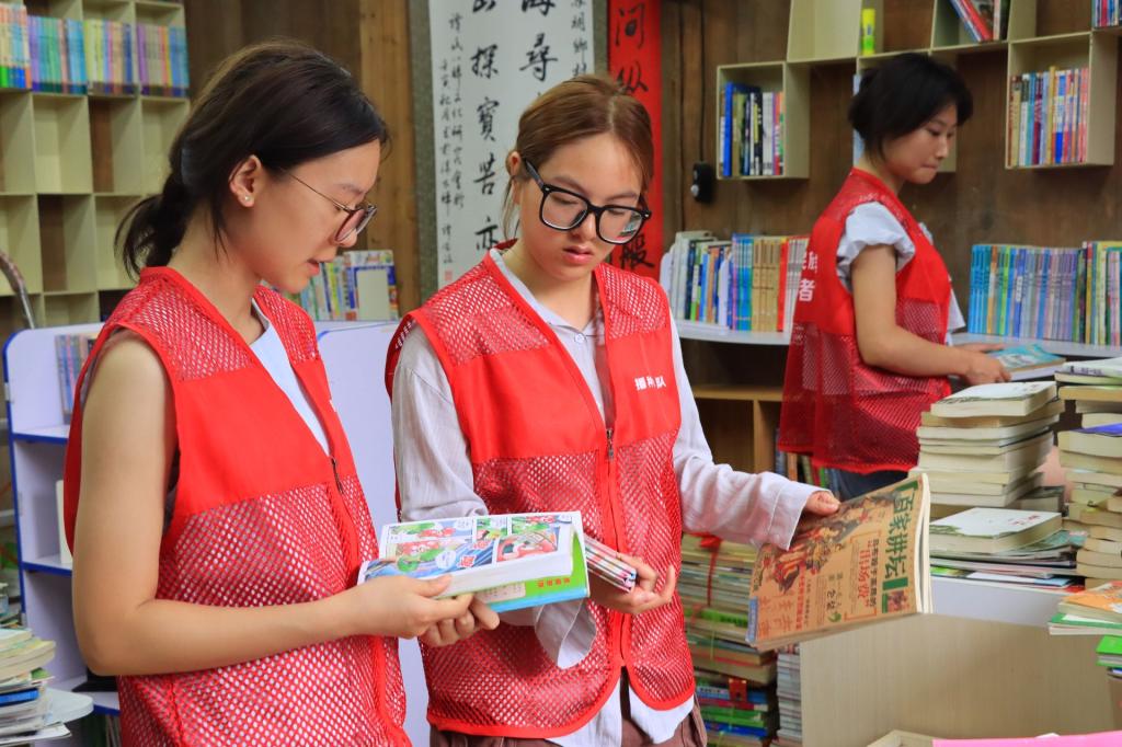 随后,队员们将晾晒好的图书搬运回馆进行细致分类。针对爱心人士捐赠的新书,志愿者们认真记录每一本书籍信息,并按照文学、科普、教育等类别编目造册,确保捐赠图书都能被精准归位、高效利用。根据书籍内容和受众群体特点,图书馆被划分为青少年读物区与成人服务区两大板块。“青少年正处在求知欲旺盛的阶段,设置专属阅读区能让他们更方便地找到感兴趣的书籍,进一步激发阅读兴趣。”队长黄婷婷介绍道。