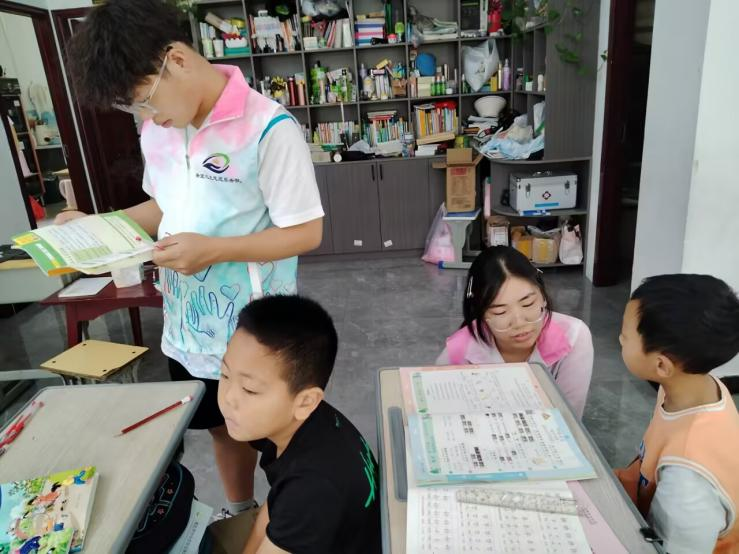 午后的托管中心充满欢声笑语,作业辅导环节是孩子们最期待的时刻。孩子们在志愿者身旁踊跃提问,志愿者们耐心解答,用生动的比喻讲解数学逻辑,以趣味联想解析语文词句,让学习变得轻松高效。