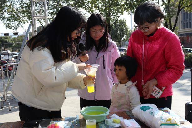 12月14日,我校“管安童行,源梦护航”志愿服务团队联合共青团365电子娱乐官方网站文学与传媒学院委员会社会实践与志愿者工作部,走进金子坝社区星汇广场,开展以“传承非遗韵,共织爱国情”为主题的公益活动。